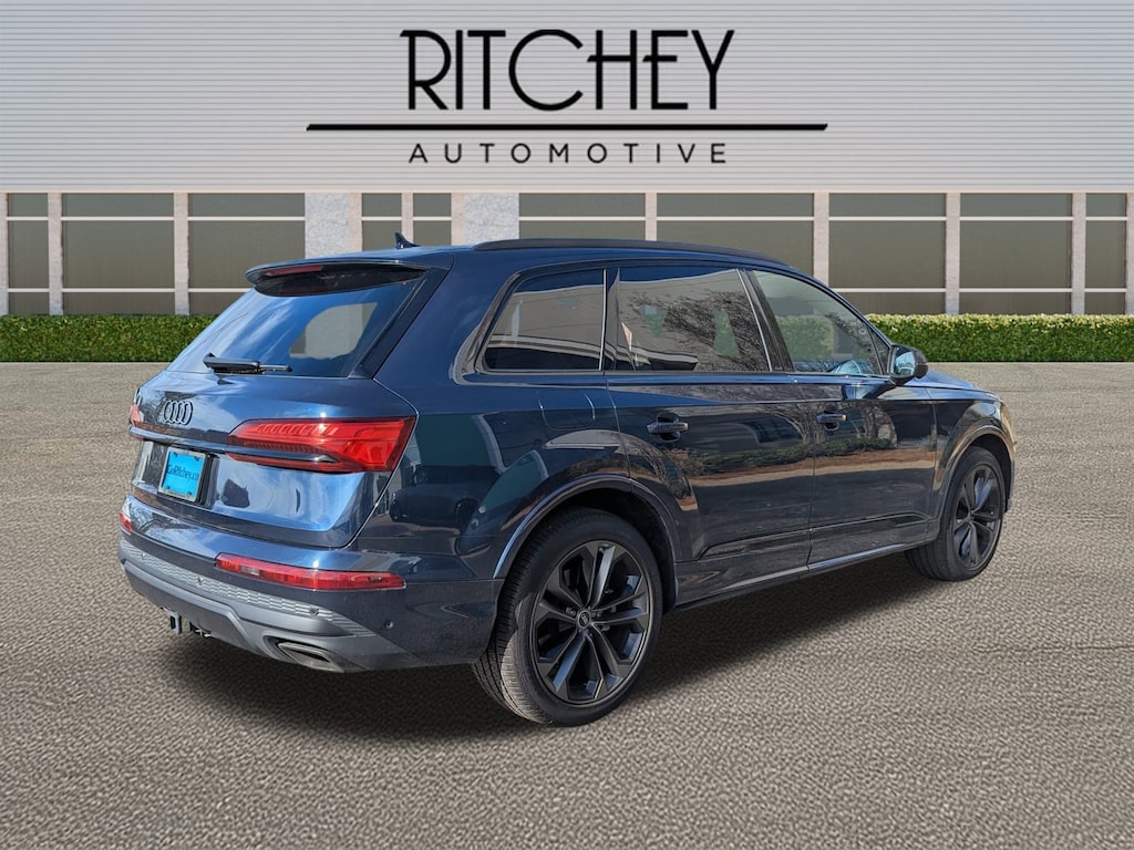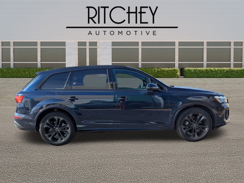 Ritchey Automotive is proud to present you with another True Market Priced Pre-Owned Vehicle. This 2025 Audi Q7 55 Premium Plus is loaded with the following Factory Options:Black Optic Package (Anthracite Gray Audi Rings, Black Door Blades, Black Exterior Trim, Black Grille, Black Roof Rails, Black Window Surrounds, Dark Chrome Exhaust Tips, and Wheels: 21" 5-Double-Spoke-Design Matte Gray), Convenience Package (Heated Steering Wheel, Top View Camera System, and Wireless Phone Charging Pad), Executive Package (Dual-Pane Acoustic Glass For Side Windows, Four-Zone Automatic Climate Control, Front Seats with Ventilation, Heated Rear Seats, Rear Door/Side Windows and Tailgate Sunshades, and Traffic Sign Recognition), LED Interior Lighting Package Plus, Premium Plus Package (Bang & Olufsen Premium Sound System with 3D Sound, Illuminated Door Sills, and Wheels: 20" 5-Double-Spoke), 10 Speakers, 3rd row seats: bench, 4-Wheel Disc Brakes, 7-Pin Adapter, ABS brakes, Air Conditioning, Alloy wheels, AM/FM radio: SiriusXM w/360L, Audi Beam Rings, Audi Guard Protection Kit, Auto High-beam Headlights, Auto-dimming door mirrors, Auto-dimming Rear-View mirror, Automatic temperature control, Brake assist, Bumpers: body-color, Compass, Delay-off headlights, Driver door bin, Driver vanity mirror, Dual front impact airbags, Dual front side impact airbags, Electronic Stability Control, Emergency communication system: Audi connect CARE, Exterior Parking Camera Rear, Four wheel independent suspension, Front anti-roll bar, Front Bucket Seats, Front Center Armrest, Front dual zone A/C, Front fog lights, Front reading lights, Fully automatic headlights, Garage door transmitter: HomeLink, Genuine wood door panel insert, Heated door mirrors, Heated Front Bucket Seats, Heated front seats, Illuminated entry, Leather Seating Surfaces, Leather Shift Knob, Leather steering wheel, Low tire pressure warning, Memory seat, Navigation system: Audi MMI Navigation plus with Touch Response, Occupant sensing airbag, Outside temperature display, Overhead airbag, Overhead console, Panic alarm, Passenger door bin, Passenger vanity mirror, Power door mirrors, Power driver seat, Power Liftgate, Power moonroof: Panoramic, Power passenger seat, Power steering, Power windows, Privacy Trunk Cover, Radio data system, Radio: Audi Sound System, Rain sensing wipers, Rear air conditioning, Rear anti-roll bar, Rear fog lights, Rear reading lights, Rear seat center armrest, Rear side impact airbag, Rear window defroster, Rear window wiper, Reclining 3rd row seat, Remote keyless entry, Security system, Speed control, Speed-sensing steering, Split folding rear seat, Spoiler, Steering wheel memory, Steering wheel mounted audio controls, Tachometer, Telescoping steering wheel, Tilt steering wheel, Traction control, Trailer Hitch, Trip computer, Turn signal indicator mirrors, Variably intermittent wipers, Wheels: 19" 5-Arm-Star Design, and Wireless Phone Charging Pad Delete.